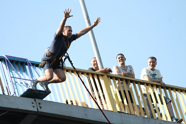 Программа была насыщенной, а началось все с прыжков с пешеходного моста – роупджампинга, как сейчас называют этот экстремальный вид спорта. Прыгали все, участники АТО, их жены, друзья и знакомые.