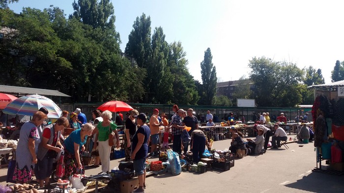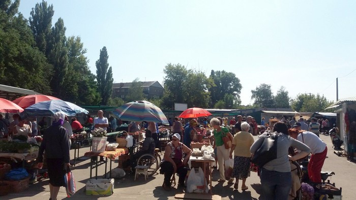 - Ну що сказати про умови на цьому базарі? Хіба це умови? Завезли нам всяке сміття (маючи на увазі старі поламані столи-парти) і поставили, як ніби ми не люди. Директор ринку сказав: «Мне наплевать. Мне выгоднее запустить фуру, чем вас тут содержать». Ставлення, як до худоби. Щоб зайняти місце під дахом, потрібно приїхати в 5 ранку. Нехай би самі постояли в таку спекоту 7 годин. Торгівля на вулиці під деревом була набагато краще. Ми там швидко розпродавали все і їхали додому. Нам же потрібно якось виживати з нашими пенсіями.