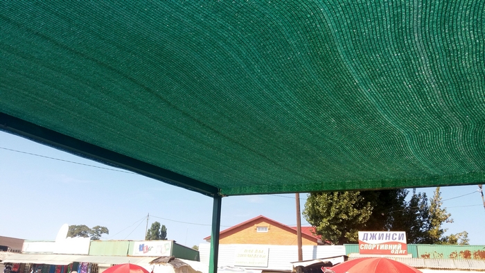По-видимому, у местных властей и директора рынка хватило средств только на 4 места. Потому что, только на 4-х местах возле бетонного забора можно высидеть с 5 утра до 16.00. Только на этом участке есть крыша, которая защищает продавцов от солнца и дождя. Еще есть несколько рядов с натянутой сеткой вместо крыши, которая от дождя не спасет, остальные ряды укрытия не имеют вообще, и продавцы стоят просто под палящим солнцем, а некоторые ряды, и подавно тяжело назвать торговыми местами.