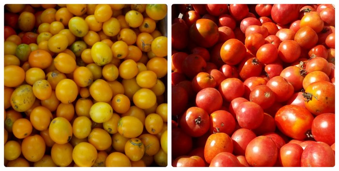 - Есть помидоры современные, для торговли, есть помидоры - для еды. Если я буду выращивать, так называемые, современные сорта помидоров, такие как «Чумак», «Солероссо», я смогу быстро продавать их оптом. Такие помидоры, как правило возят фурами в картонных ящиках в 6 этажей из южных регионов Украины. Они твердые на ощупь, а значит, транспортабельны, красивые, глянцевые на вид, могут храниться в течении 2-х недель, но по вкусу значительно уступают моим, сочным, мягким и хранящимся совсем недолго. Поэтому, я их называю помидорами «для еды». А вот эти помидоры, красные и желтые, мелкие, но вкусные, предназначены для консервации и засолки.