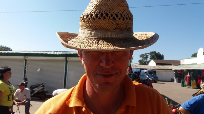 На Привокзальном рынке Петр торгует не часто, от жары спасается соломенной шляпой «Malboro», которая служит для него «визитной карточкой». По этой самой шляпе его замечают на других рынках покупатели.