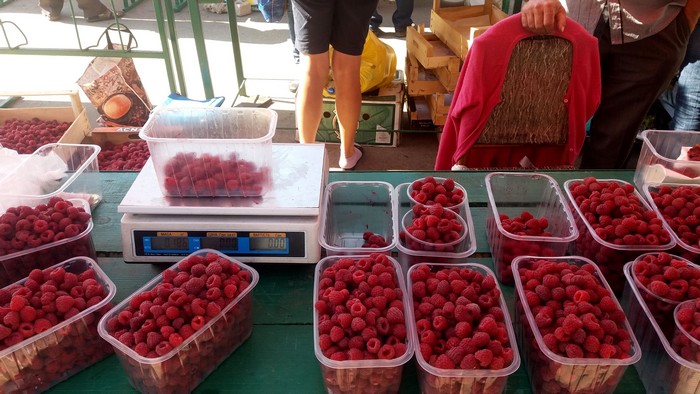 Зимой он отдыхает, в начале весны продает рассаду, потом всё, что созревает по очереди: редиску, огурчики, клубнику и т.д. Сейчас продает помидоры по 8 грн./кг, ремонтантную клубнику (созревает 2 раза в год) и малину сорта «Таруса» по 40 грн. за 1 кг и по 70 грн. за 2 кг.