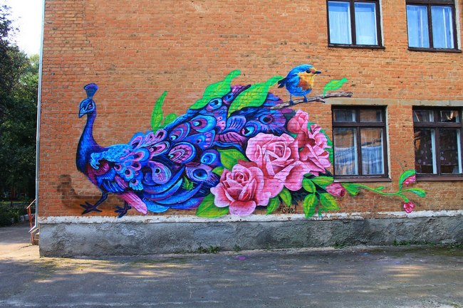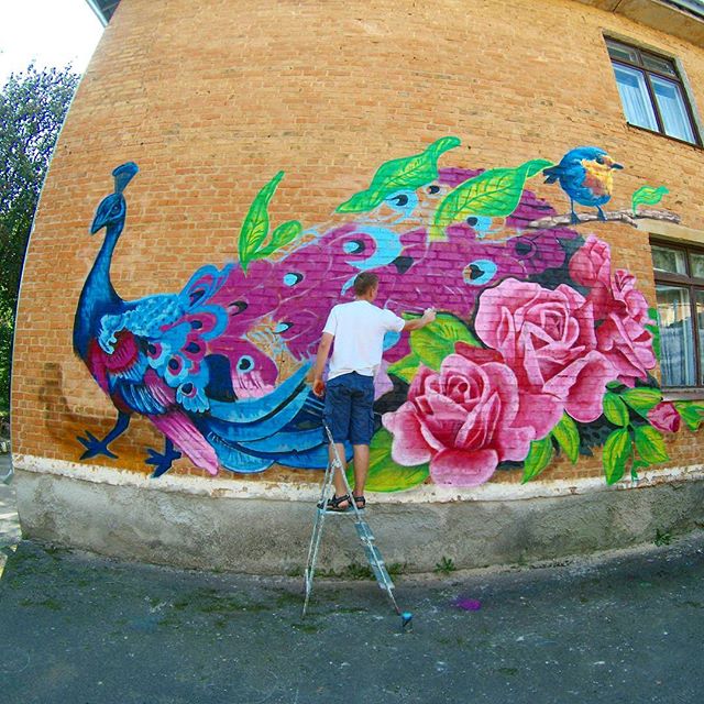 Граффити-художник Виталий Гидеван, автор украшенного цветами ежика, что недавно появился на стене здания магазина «Домашний» по ул. 1-го Мая, продолжает украшать своими рисунками улицы.
