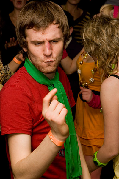Человеку с фотоаппаратом в происходившем безумии перемещаться было затруднительно, что и отразилось в некоторой однобокости фото-репортажа. Посетители же решали проблему тесноты, традиционно расширяя площадь танцпола за счет столешниц столов.