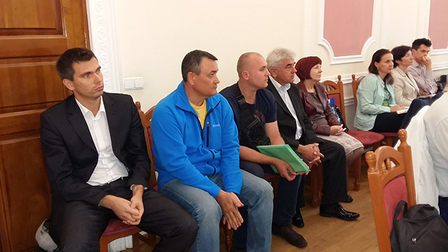 На фото: Александр Гашпар, Татьяна Мазур и руководитель ООО «Топаз» активно доказывают свои позиции в вопросе застройки территории