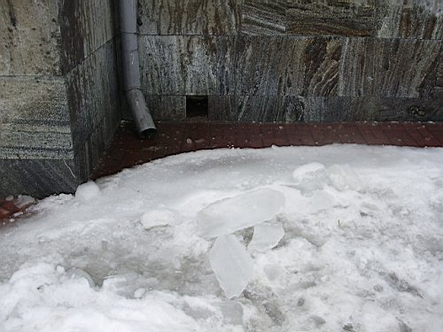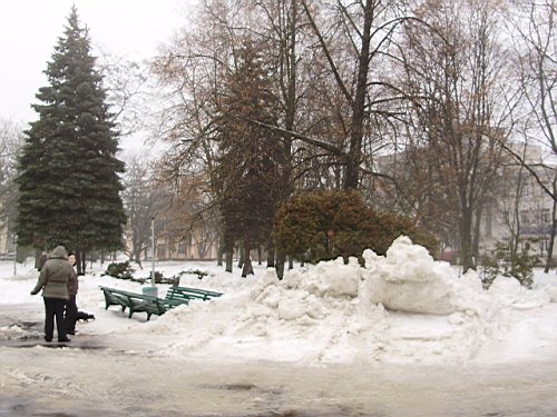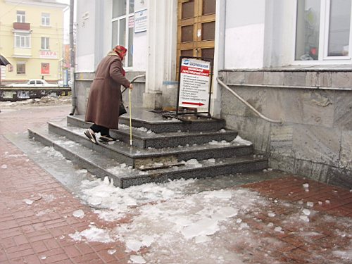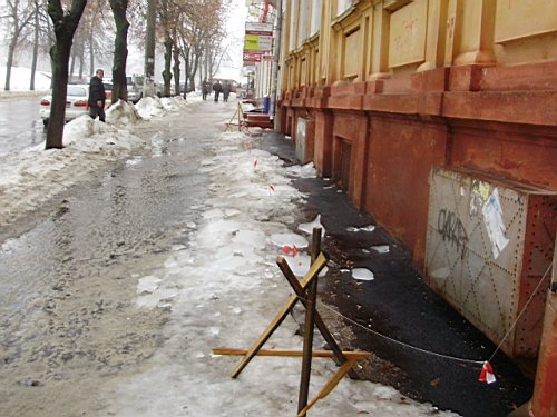 Потепление, пришедшее на смену морозу добавило проблем коммунальным службам. Крыши административных зданий и жилых домов в центре города, где ежедневно проходят тысячи людей теперь представляют опасность. Подтаявшие глыбы льда и массы мокрого снега падают с большой высоты вниз, под ноги прохожим. И это хорошо, если под ноги, а не на голову. Так, свалившийся с крыши Главпочтамта лед пробил обшивку газетного ларька. Тротуары в Чернигове теперь, как минные поля, усеянные осколками льда. Хозяева зданий оградили опасные участки лентами и спецзнаками. А уборочные машины носились по городу целый день, чтоб успеть убрать весь снег с крыш.