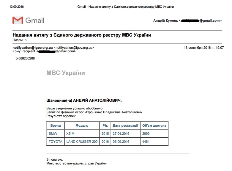 Так, согласно данных реестра 6 сентября на имя Атрошенко был зарегистирован автомобіль TOYOTA LAND CRUISER 200, 2016 года выпуска с объем двигателя 4461 см3. В зависимости от комплектации такой автомобиль по мнению авторов материала стоит от 80 до 140 тысяч долларов. По информации журналистов ПиКа мэру в течение двух дней оформили и достойный номерной знак к автомобилю СВ 0001 АА.