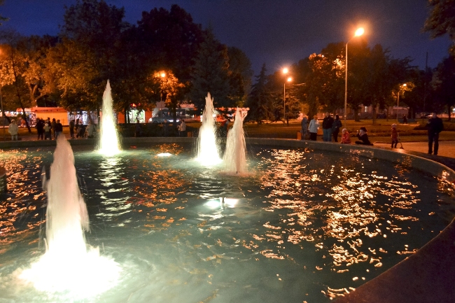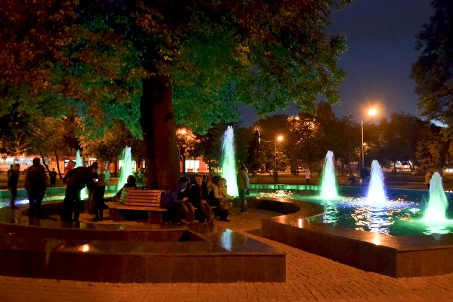 По дороге от фонтана на площадь то и дело встречались компании школьников, которые шли, а иногда и бежали к фонтану, боясь, что его выключат. Тем не менее и около 12 часов ночи он еще продолжал работать.