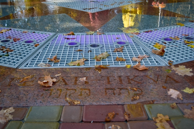 Вокруг фонтана размещены плиты с выгравированными на ними названиями городов-побратимов Чернигова.