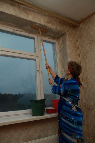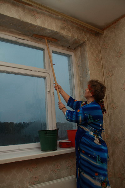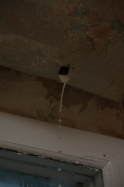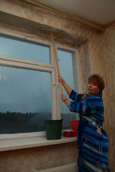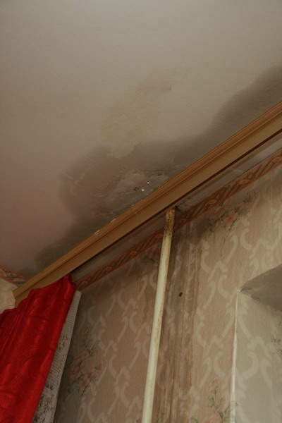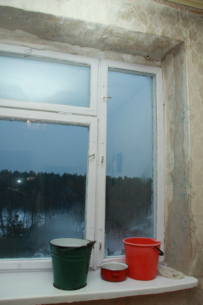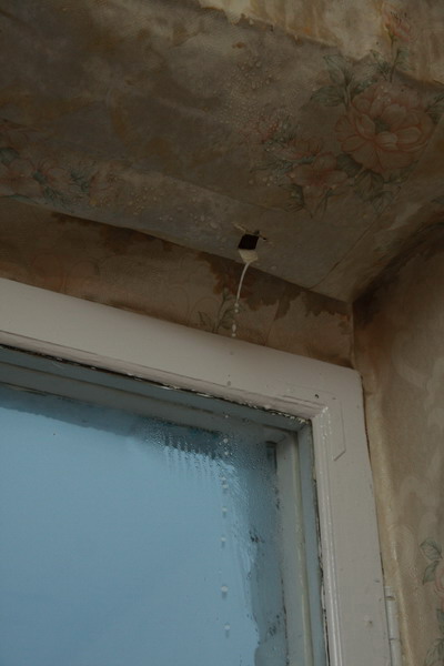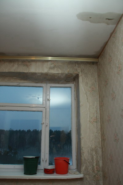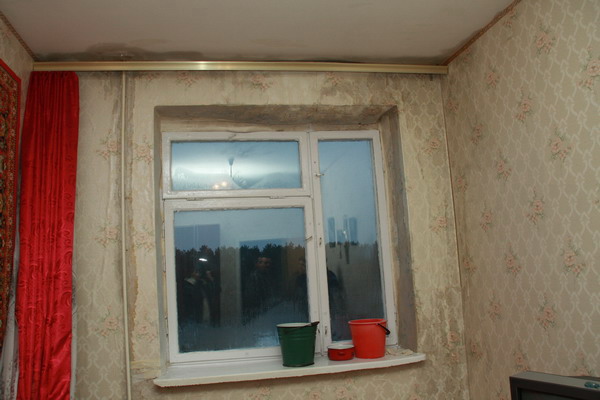 В квартире оказалось не просто сыро - с потолка бежала вода! На подоконнике наполняются ведра. Обои со стен отклеились и висят лохмотьями. Мокрые розетки грозят коротким замыканием, током ударить.