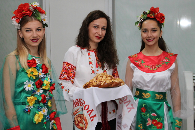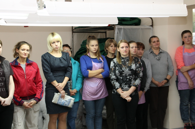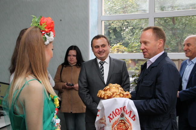 Хлебом и солью встречали работники швейной фабрики городского главу.