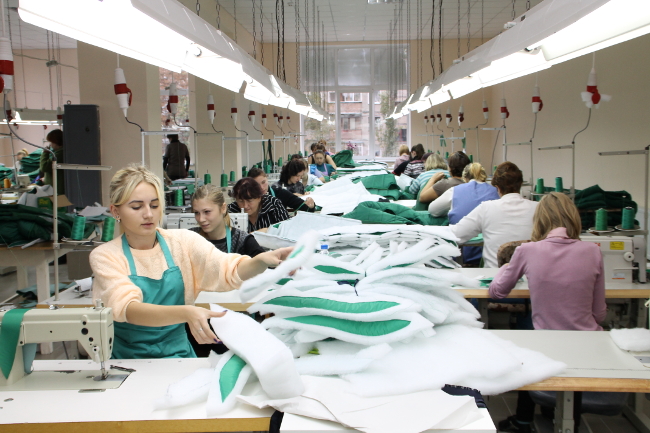 По его словам, производство начинается с конструкции модели, которое выполняется на современном компьютерном оборудовании. Затем в раскройном цехе ткань раскраивается по лекалам. В вышивальном цехе, по желанию заказчика наносится их бренд, и следующий этап швейный цех, где одежда приобретает свой окончательный вид.