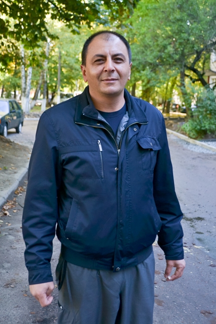 Вначале с ходом работ знакомились сами. Найти рабочих, которые устанавливают бордюры и ремонтироуют дороги на Рокоссовского, здесь как раз кипит работа, оказалось не сложно. Местные жители сразу подсказали, где искать рабочих. Те, в свою очередь, сразу указали где найти главного, который все и расскажет. Им оказался Андроник Владимирович Мкртчян, который предложил пройти по дворам и показать масштаб работ.