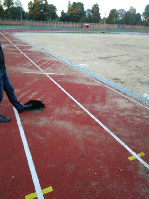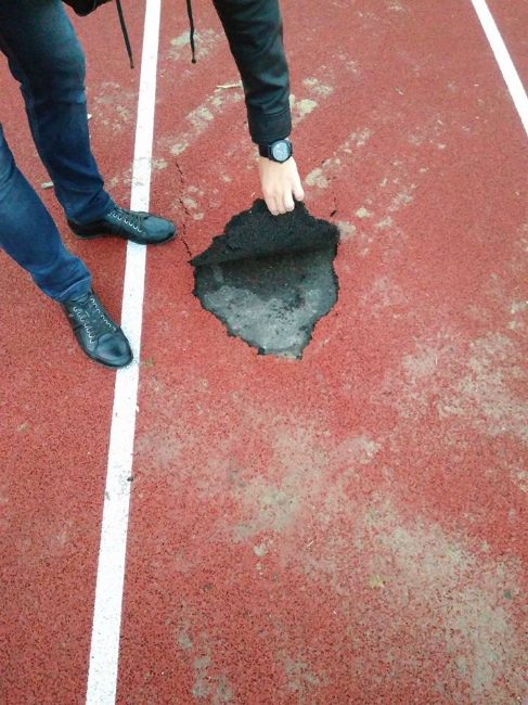 Пост дівчини розлетівся мережею, десятки коментарів. Поставив крапки над «і» депутат обласної ради Андрій Прокопенко: «За фактом пошкоджень був складений акт із фотографіями, підписаний дирекцією стадіону та організаторами. Відновлення покриття буде проведено протягом 14 днів за рахунок організаторів».