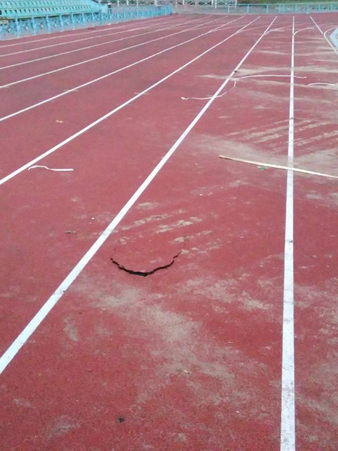 Новеньке покриття на стадіоні Гагаріна пошкодили. На бігових доріжках, які постелили цього року з’явилися розриви. Покриття не витримало концерту «Океану Ельзи», який відбувся 28 вересня.