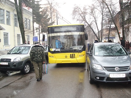 Как только «хюндай» отъехал, все ожидавшие рассыпались по троллейбусам, через пять минут движение возобновилось. А гаишники остались поджидать водителя серого «фольксвагена», припарковавшегося с левой стороны по ходу транспорта. Хотя действительно — если бы снег не лежал еще и на проезжей части сразу за бордюром, авто стало бы ближе к тротуару и «Богдану» хватило бы места, чтобы проехать между двумя автомобилями.
