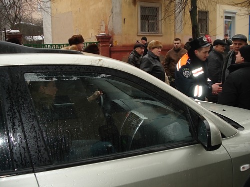 Через 20 минут после вызова прибыли сотрудники ГАИ, оценили обстановку и стали ждать эвакуатор. Но радикальные меры принимать не пришлось. Через десять минут со стороны стоматологической поликлиники к автомобилю «Хюндай Гольф», припаркованному справа по ходу транспорта, подбежала девушка и уселась в авто, захлопнув дверцу. Хорошо, что она все это делала быстро. Так и не протрезвевший за время ожидания мужчина и еще несколько «сочувствующих» рванули за ней и, навалившись на капот, не давали авто сдвинуться с места. Стражам порядка пришлось вступиться за водительницу, оттирая от автомобиля разъяренных мужчин. Машина рванула с места и исчезла за углом.