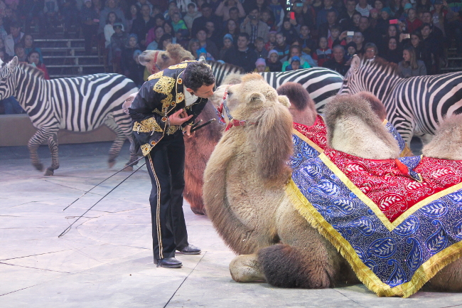 Верблюды и слоны, тигры и аллигаторы, зебры, кенгуру, страусы, бизоны, лошади, головокружительные полеты под куполом цирка, красочные костюмы артистов и световые эффекты в сочетании со звуком. Все это увидели посетители цирка «Кобзов» на первом его представлении.