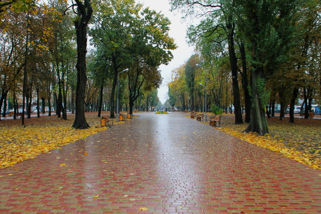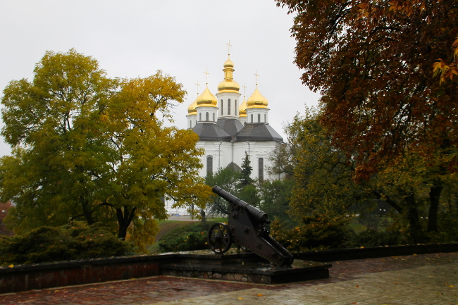 Серое небо, сыплет непрекращающийся мелкий дождь, на улице слякотно и холодно. Редкие прохожие, укрывшись зонтиками, спешат по своим делам. Опустели парковые скамейки, и только желтые листья с тихим шорохом ложатся на них. В Чернигове – осень.