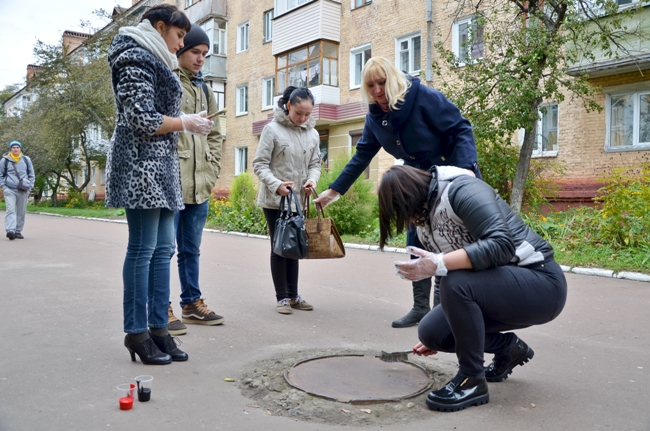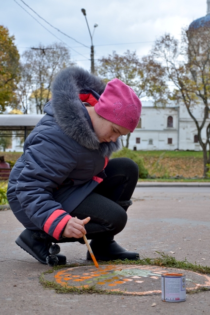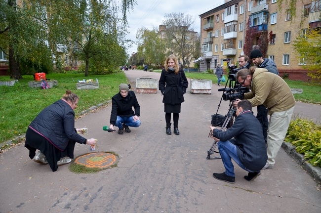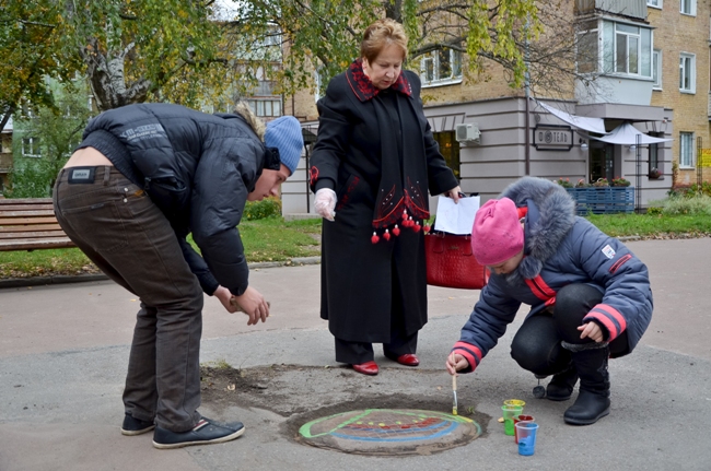"Вулиця Сережникова обиралася тому що це пішохідна вулиця, - розповіла Регіна Гусак, - тут немає транспорту і не потрібно перекривати його рух. Крім того вона знаходиться в центрі міста і, моживо в майбутньому, стане мистецькою вулицею. До того ж на люки на проїжджій частині люди менше звертають увагу, ніж на ті, що у них під ногами".