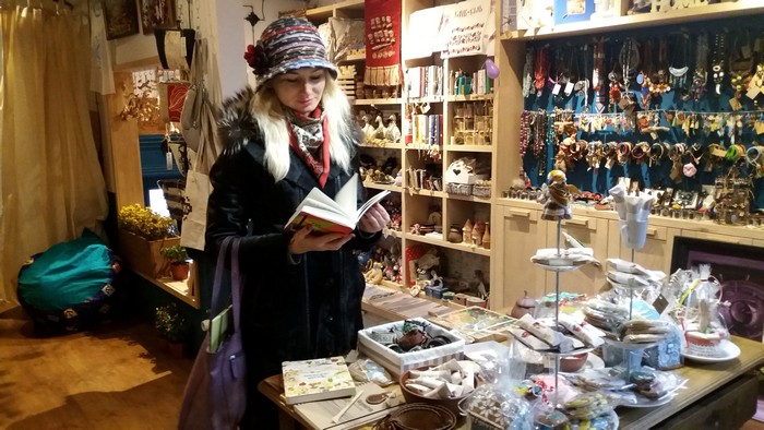 По рассказу Ольги, бывает, и иностранцы в лавку заходят. Покупают разные вещи. Немцы предпочли купить различные блокноты, американцы – изделия из дерева, недавно купили деревянного гуся и несколько кожаных сумок.