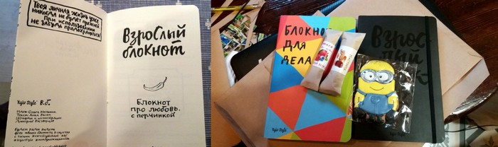 Надо отметить, что в «Зелену лавку» периодически заходили люди, либо посмотреть и полюбоваться разными предметами творчества, либо выбрать что-то в подарок. Как раз, зашла в магазинчик девушка, и стала с интересом рассматривать витрины и задавать изредка вопросы, в поисках эксклюзивных подарков. Ольга с вниманием и радушием отнеслась к подбору подарков, рассказала о материалах, особенностях, составе кондитерских изделий и т.п. В итоге, Ирина выбрала для мужчины весьма своеобразный и неповторимый «Взрослый блокнот» (про любовь с перчинкой), для девушки – «Блокнот для дела» и сладости: две фруктовых пастилы и пряник в виде веселого очкарика.