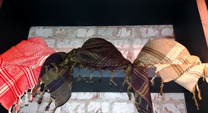 - намытки (украинские арафатки). Это настоящий эксклюзив. История возникновения намыток довольно интересная. Исходя из того, что людям нравится носить вышиванки с украинским орнаментом, девушки обратились с интересной идеей к Ольге Костюченко, которая в совершенстве владеет мастерством вышивки. Оля разложила по полочкам каждый элемент орнамента, его значение. Крест - знак Солнца и огня, женского и мужского, оберег от темных сил. Ромб - символ плодородия и т.д. К сожалению, в Украине они не нашли предприятия, которое бы выполнило все требования, и начали общаться с предприятиями Пакистана, Индии, Китая. В итоге, в Индии изготовили то, что они хотели. Исполнение было идеальным: плетение, покраска, соответствие орнамента макету. По замыслу изделие подходит и для мужчин, и для женщин. После чего, придумали название, объединив два слова: «наметка» - старинный женской головной убор и «арафатка» - неотъемлемая часть мужского гардероба в арабских странах. Получилась «намытка». Намытка обладает качествами тактической палатки: в непогоду - согреет, в жару - защитит от солнца, станет фильтром для воды, перевязкой и т.п. Состав - 100% хлопок. Цена 250 грн.;