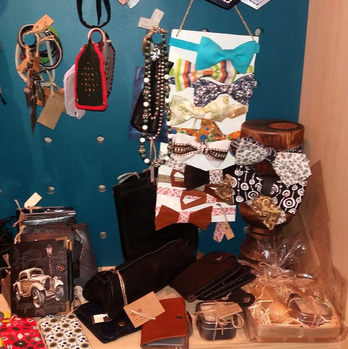 - небольшой уголок мужских изделий (вышитые, с украинским орнаментом галстуки, бабочки, кожаные ключницы, портмоне, визитницы, набор для бритья с помазком и пеной для бритья, сделанной вручную, браслеты, четки и т.п.);