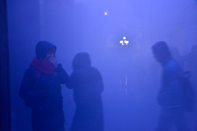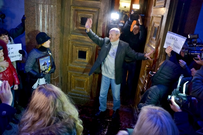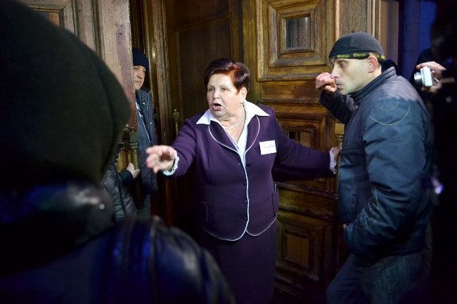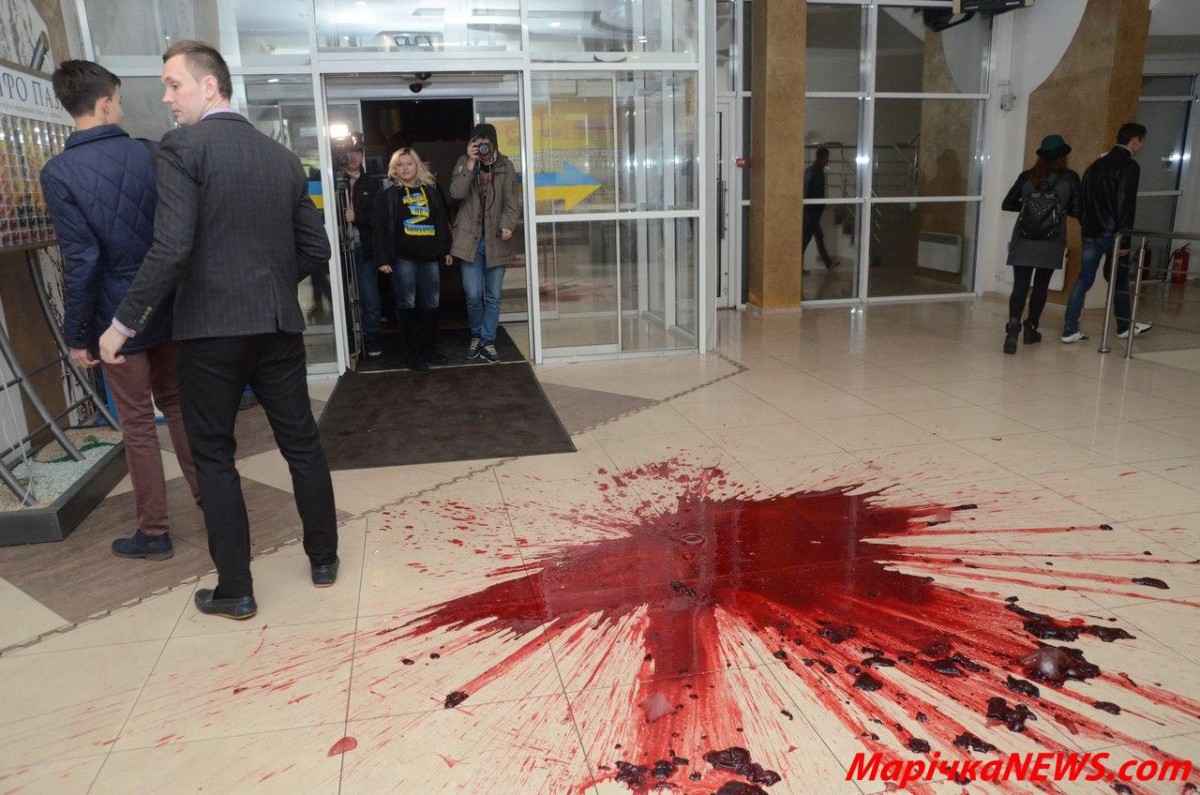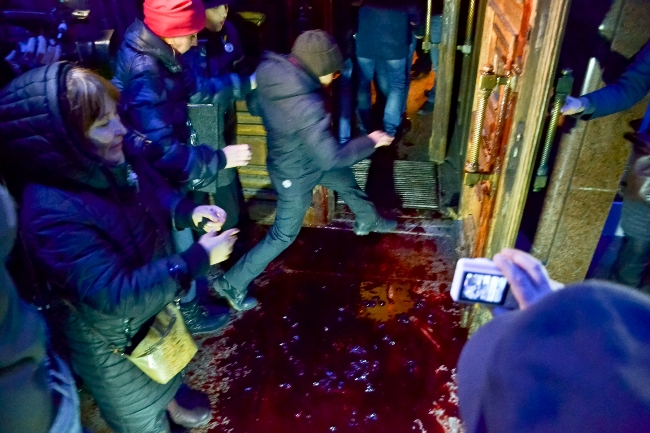 В якийсь момент ситуація почала виходити з під контролю, спочатку відкрили інші двері до театру, де не було крові, але їх швидко заблокували. На той момент всі двері виявилися зачиненими. Але ситуацію швидко вдалося владнати і відкрити той прохід, що був залитий кров'ю. Ще за якийсь час на порозі театру опинилася димова шашка, але її швидко звідти прибрали. Працівники театру намагалися витерти кров з проходу, але її знову і знову підливали.