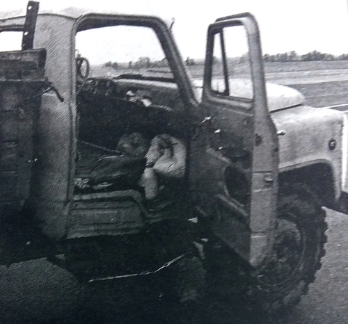 Как выяснилось, в гостях у заявительницы находилась приехавшая из Чернигова на грузовом автомобиле ГАЗ-53 супружеская пара. Погостив некоторое время, супруги засобирались домой. Но судьба распорядилась иначе. Когда севший за руль после обильных возлияний водитель разворачивал свою машину задним ходом, на его пути оказалась жена. Услышав дикий крик, за ворота выбежала хозяйка. Картина, представшая перед глазами перепуганной женщины, привела ее в состояние шока. Раздавленная мощными колесами грузовика, на земле лежала недавняя гостья. Ее «невольный» убийца стоял рядом, с ужасом глядя на дело своих рук. Придя в себя, мужчина схватил труп жены, посадил его рядом с собой в кабину, и, пообещав отвезти погибшую в больницу (?!), рванул с места.