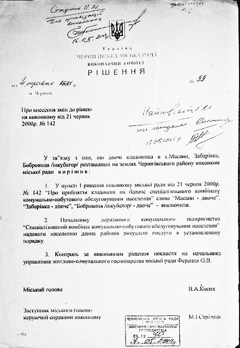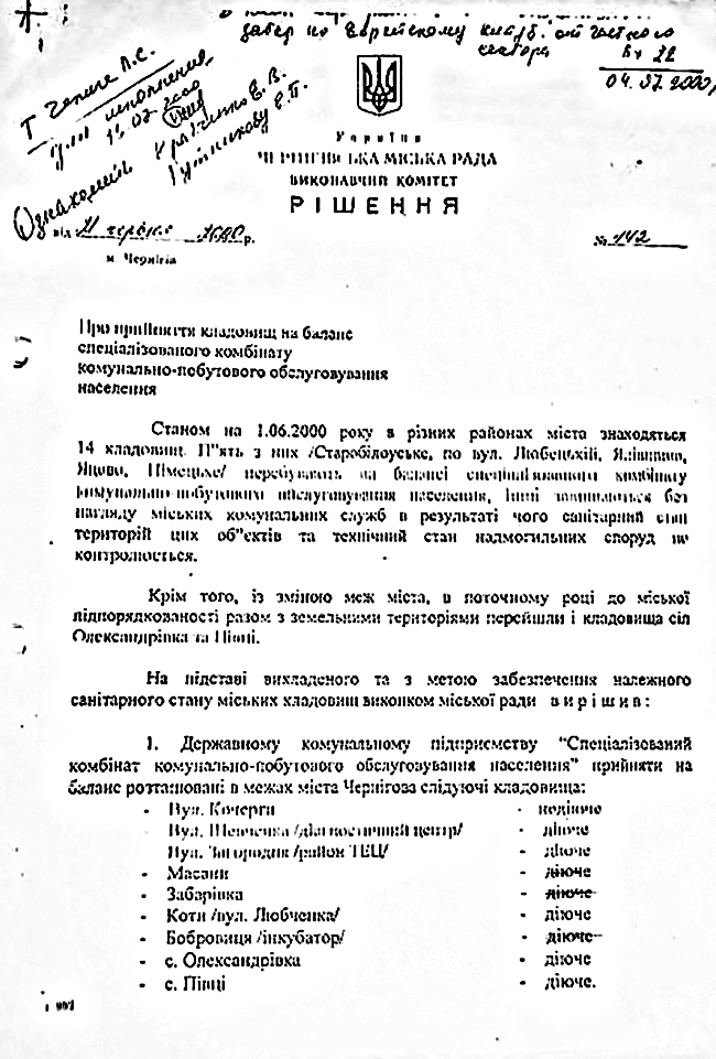 Кроме того, из ответов Черниговской РГА следует, что она неоднократно пыталась убедить Черниговский горсовет в необходимости принять кладбище на баланс. Но нужно ли «неперспективное» кладбище городу? Ведь территория для развития объекта отсутствует. А вот его содержание будет стоить немало, и, кроме того, усложнено большим количеством деревьев на территории захоронения.