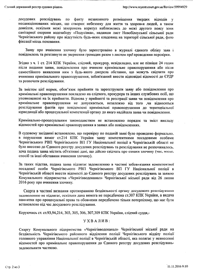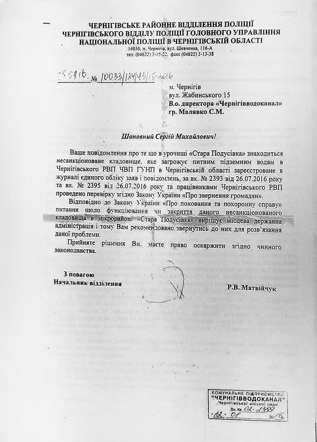 В этом вопросе попыталось разобраться руководство КП «Черниговводоканал». Не само, конечно, а через Национальную полицию. Несмотря на то, что Нацполиция послала Водоканал к местной администрации, руководство коммунального предприятия через суд смогло добиться того, что информацию об уголовном правонарушении внесли в Единый реестр досудебных расследований. Надеемся, что в рамках уголовного производства Нацполиция ответит на вопрос, кто же проводит захоронения и являются ли они санкционированными. Тогда можно будет определить, кото же будет отвечать за ограждение и уборку кладбища.