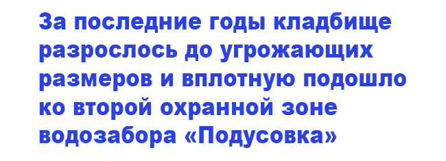 Первые (сельсовет) должны просить помощи в определении границ кладбища и в его обслуживании, а вторые (Водоканал) – в обеспечении контроля над соблюдением норм охранной зоны и безопасности водозабора «Подусовка» в целом.