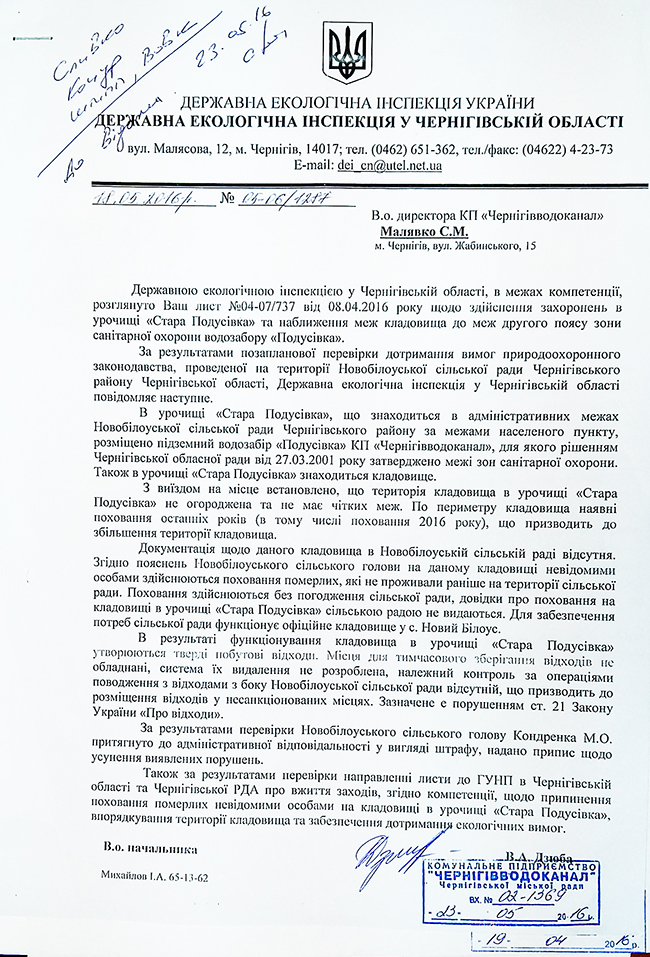 А экологическая инспекция области только и смогла, что привлечь к административной ответственности председателя Новобелоусского сельсовета, да написать обращения в Нацполицию и Черниговскую РГА.
