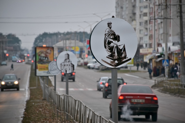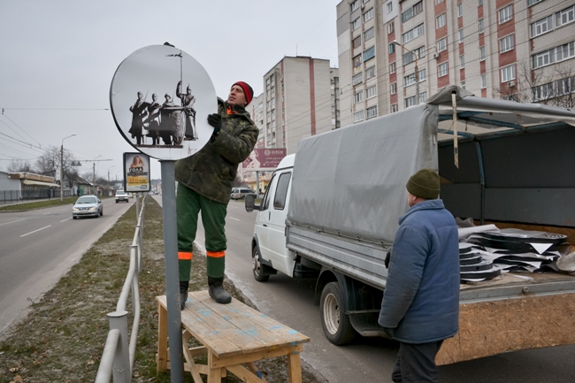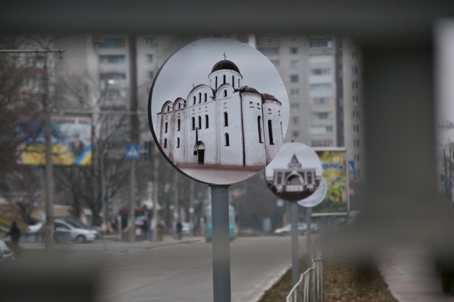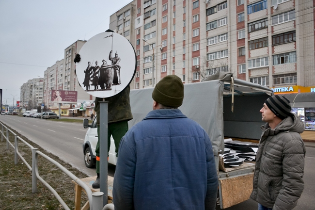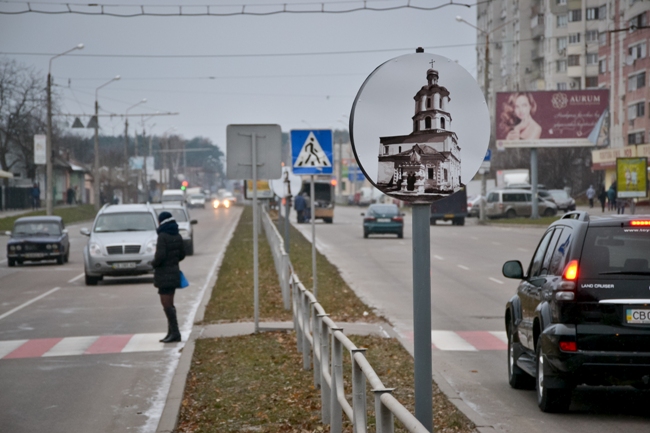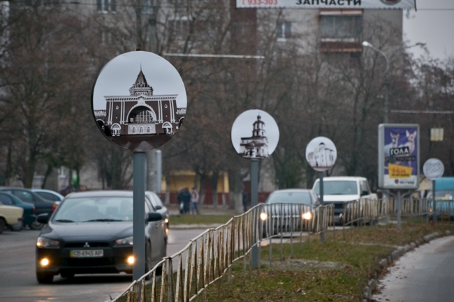 Сегодня, 22 ноября сотрудники КП «Зеленбуд» устанавливали на ул. Рокоссовского фотографии архитектурных объектов Чернигова. Как прокомментировали на самом предприятии, ранее на металлических столбах были размещены термочаши с цветами.