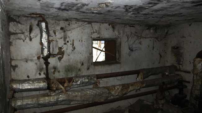 Теплопункт одного из домов: окна нет, изоляция труб - отсутствует. Тепло на ветер!