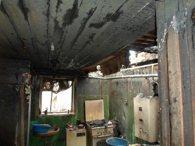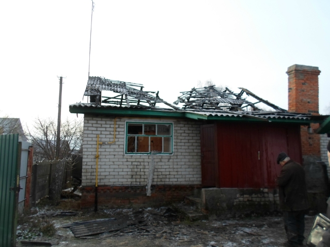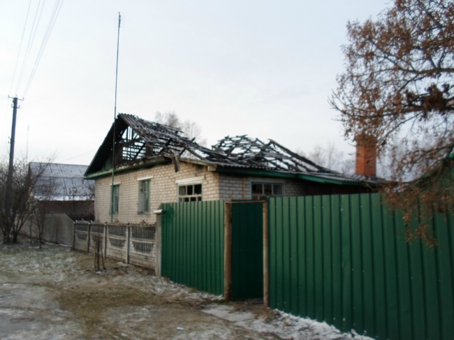 Огнём уничтожена крыша, повреждены перекрытия и стены. Хозяин не пострадал.