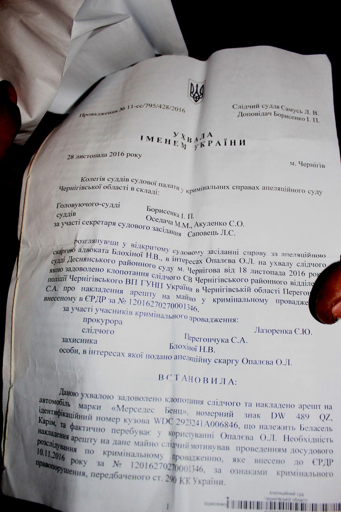 Действительно, решение суда уже висит в интернете, проверить это можно за 1 минуту даже с мобильного телефона: http://www.reyestr.court.gov.ua/Review/63125501, где говорится: Після проведення експертизи комплексного дослідження транспортного засобу автомобіля «Mercedes Benz» номерний знак DW 489 QZ, ідентифікаційний номер кузова WDС 2923241А006846 передати даний автомобіль на відповідальне зберігання Олегу Опалєву.
