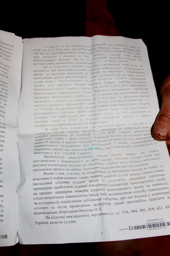 Напомним нашим читателям, что 9 ноября на международный пункт пропуска «Славутич» прибыл автомобиль Mercedes-Benz GL 350 французской регистрации, под управлением 52-летнего жителя Чернигова. Автомобиль проверили по базе Интерпола и было похоже на то, что он краденый. Ориентировочная стоимость авто была заявлена в 100 тысяч долларов, машину для проведения следственных действий направили в полицию, несмотря на то, что все документы на него у водителя были при себе. Говорили пограничники, что отрабатывать ситуацию по автомобили приехали даже черниговские СБУшники, но в пресс-службе СБУ этот момент отрицали. Как оказалось позже, водитель автомобиля утверждал, что да, сотрудники ведомства таки прибыли по его душу.