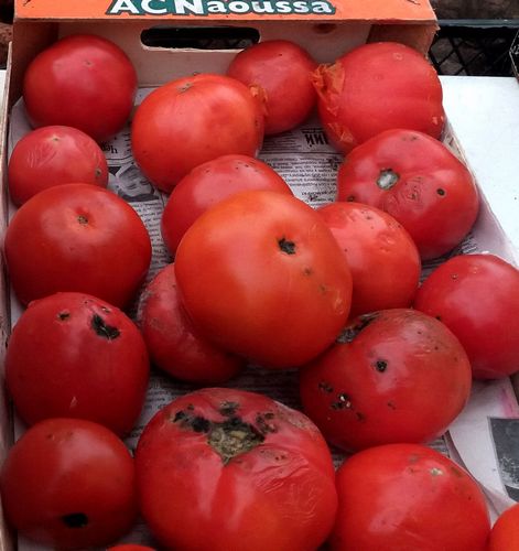 Помидоры теряют свой внешний вид и портятся от перепада температуры, особенно, если столбик термометра опускается ниже 0 С. Приходится, как рассказывает продавец, снимать с прилавка и готовить из них борщ и аджику.