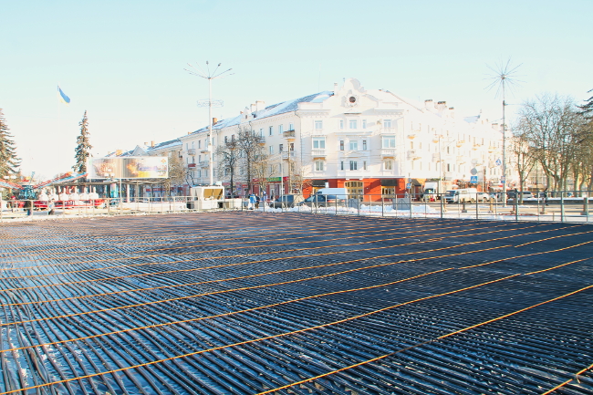 И конечно, главная изюминка – ледяной каток, как во многих странах Европы. Тут уже работы подходят к завершению, трубки по всей площади арены уложены.