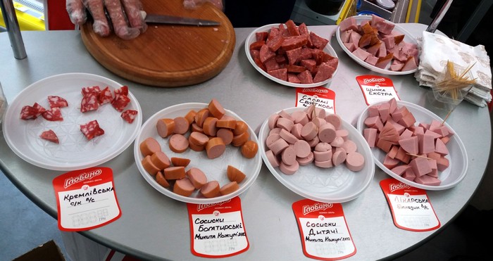 Также проводилась дегустация колбасных и мясных изделий торговой марки «Глобино». Угощала колбаской покупателей мерчендайзер Ольга Пилипенко.