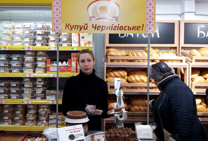 На территории торгового зала покупателей угощали тортом «Пражский» от Черниговского хлебокомбината №2.
