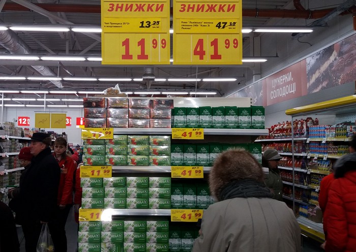 В связи с этим радостным событием, сегодня первые 150 покупателей, которые совершили покупку на сумму от 199 гривен, получили разные подарки: кофе, чай, подсолнечное масло, крупы и др.