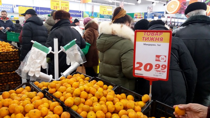 В отделе свежих фруктов сегодня Товар недели – Мандарины по 20.99 грн. за 1 кг.