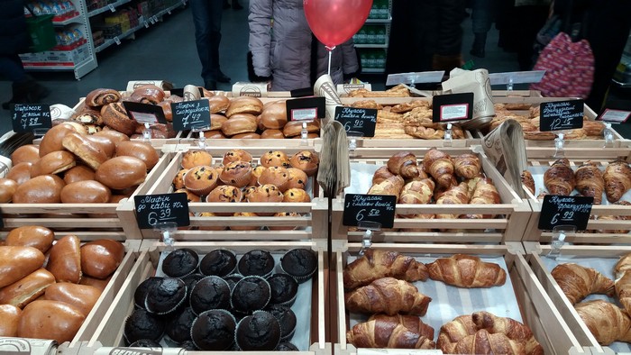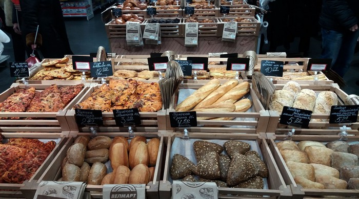Хлебобулочные изделия выпекаются в самом магазине в специальных жаровых шкафах и представлены в широком ассортименте.