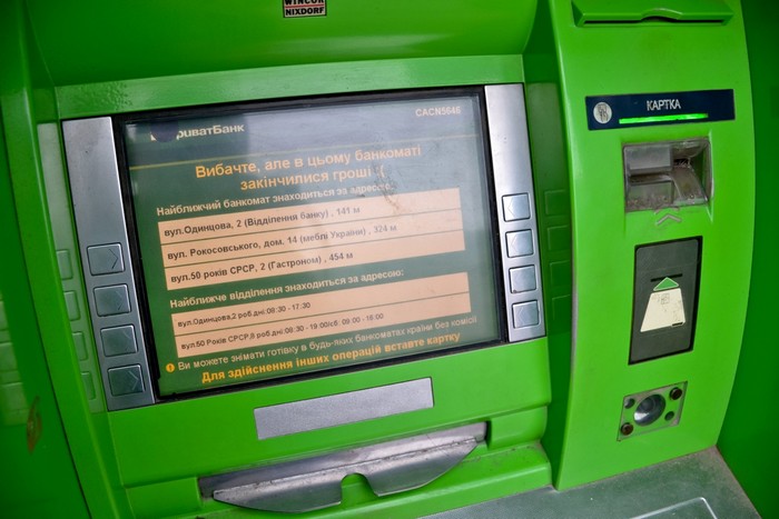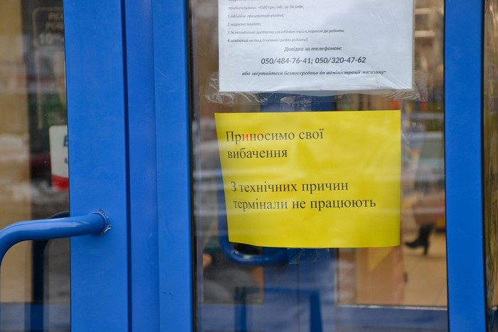 В магазине косметики «Ева» терминал Привата также пока не работает, но у них можно рассчитаться картами ПриватБанка через терминалы Ощадбанка. Также можно рассчитываться в терминалах банка Аваль, что и было без проблем сделано в магазине Союз. В маленьких магазинах и на рынке работают в основном с наличными деньгами, поэтому там люди практически никаких изменений не заметили.