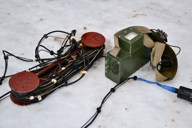Металлоискатель, который саперы применяют при поиске подводных мин. Его тоже используют здесь.