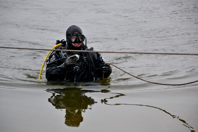 Водолазу с первой попытки зацепить автомобиль не удалось Слишком тяжелый трос и очень далеко его нужно было тянуть