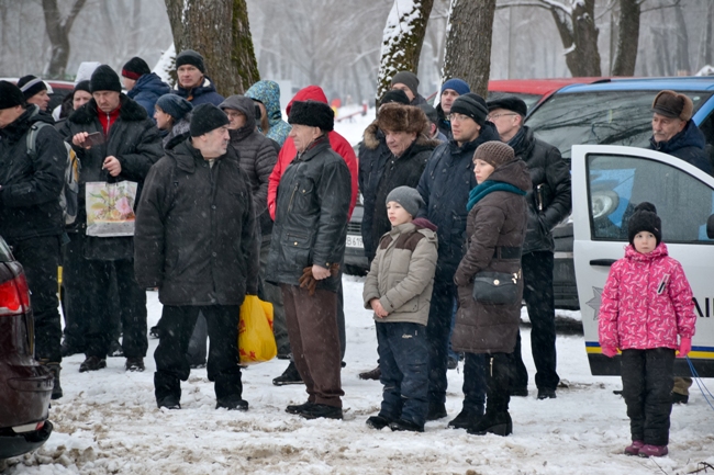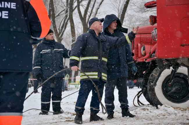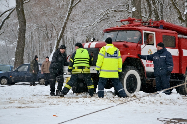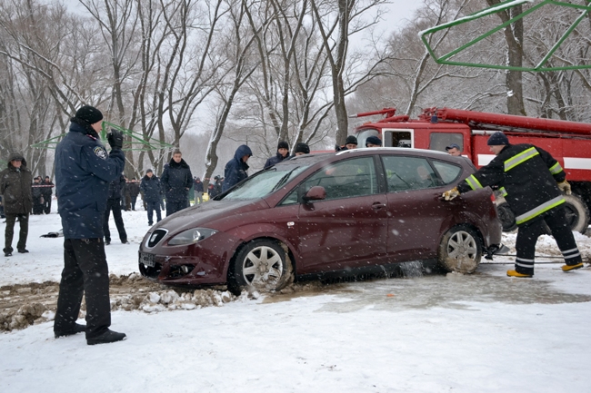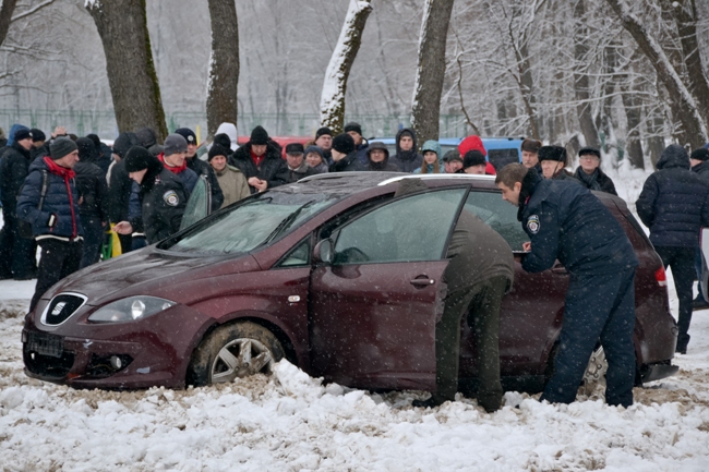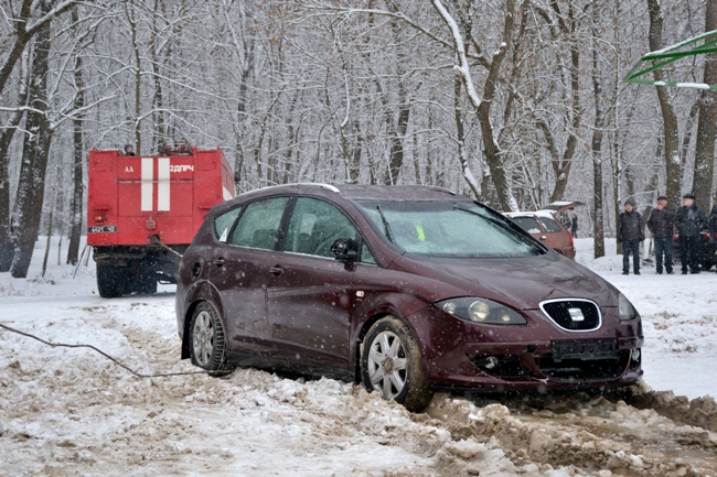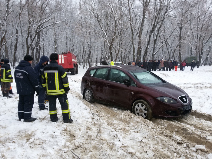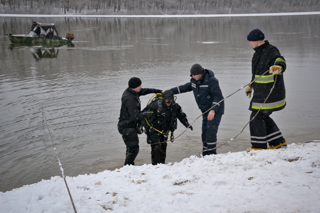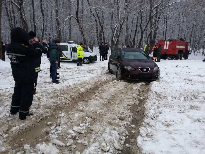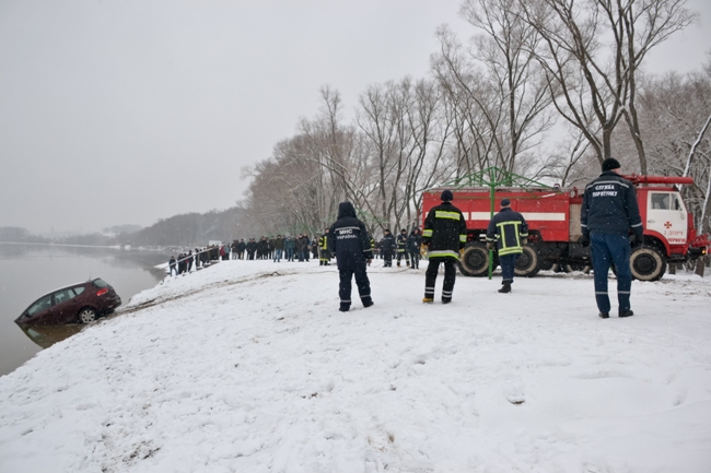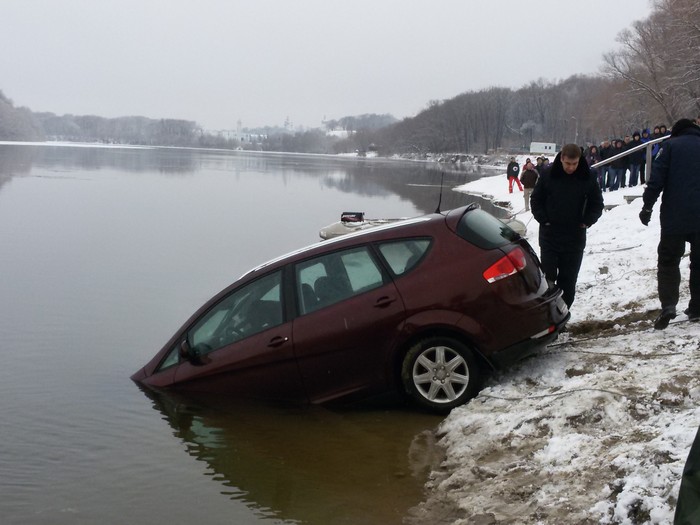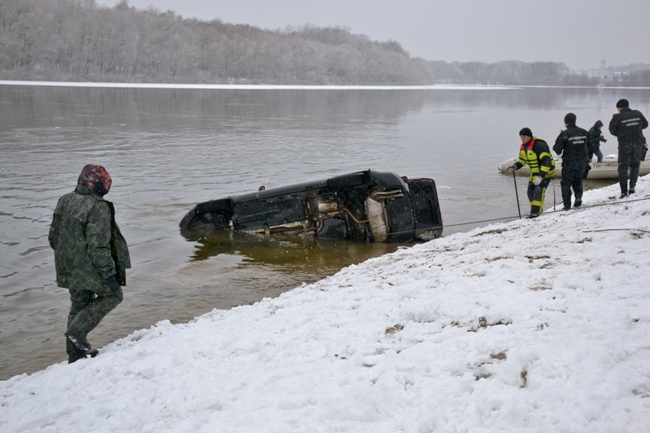 В 14.30 машину полностью вытащили на берег. Она оказалсь в 150 метрах от того места, где входила в воду. В том месте вчера тоже искали, но из-за несовершенного оборудования не заметили авто. Вчера военные привезли прибор для поиска мин в воде и таким образом место положение Сеата было определено, но так как уже потемнело операцию по подъему авто перенесли на 25-е декабря. 25-го проверили место магнитом и догадка подтвердилась, вниз опустили камеру и увидели фары. Пожарным "Уралом" автомобиль тащили из воды колесами вверх, из-за чего у машины повреждены лобовое стекло и боковые зеркала. Затем авто подцепили к "УАЗ-Патриот", дернули и она стала на колеса. Полицейские, что пребывали на месте событий, открыли дверь и зафиксировали, что в салоне находилось тело мужчины. Место, где стоит машина обнесли специальной ограждающей лентой, правоохранители записывают данные. Черниговцы, собравшиеся на месте событий, когда вытащили машину из воды обошли ленты ограждений и подошли почти вплотную, чтобы получше все рассмотреть...